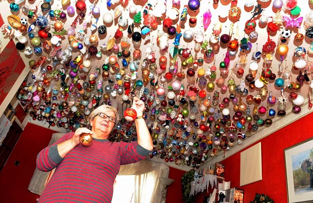 She already has a bauble collection that numbers 1,700 - which has been brought from all around the world - and each year she spends a further £100 buying new decorations. - The Mirror (December 2011)